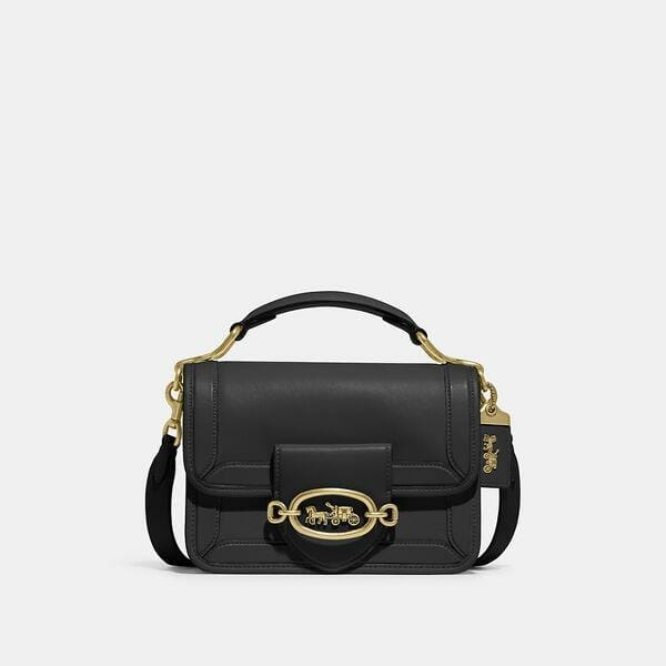 Description: Conquer the day (or night) with our perfectly organized Hero bag. Crafted of buttery soft glovetanned leather, this top-handle style has three organized compartments with a secure zip pocket, a detachable crossbody strap and pleated gussets that fan out for a roomier shape when you need some extra space. The iconic Coach Horse and Carriage, which was first introduced in the 1950s, accents the snap closure.