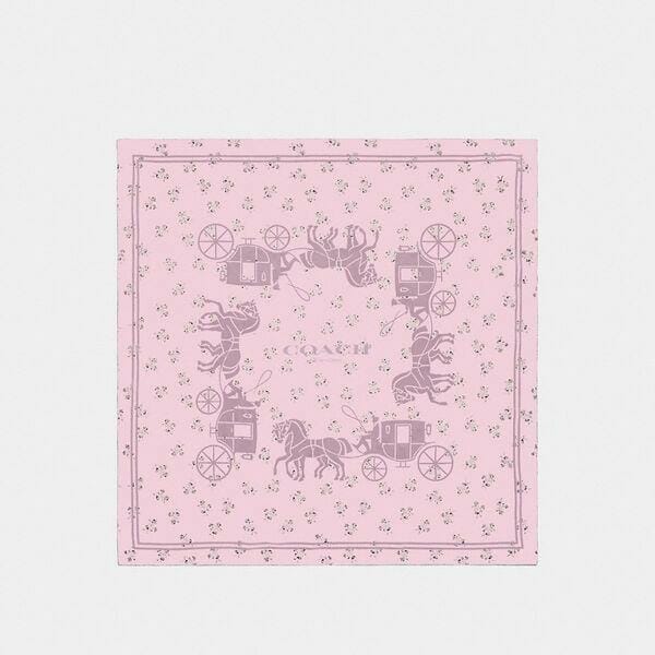 Description: A celebration of Coach heritage, this scarf features our iconic Horse and Carriage set against our nostalgic floral bow motif. It’s crafted in lightweight silk and finished with a striped border. Wrap it around the neck or throw it over the shoulders for a pop of color.