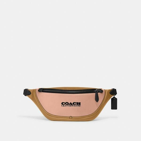 Description: Made for a life in constant motion, the League keeps your game plan on track. Crafted of colorblock refined leather and debossed with our Coach graphic, this functional design keeps essentials close at hand. The sleek style features an inside multifunction pocket and a sporty seatbelt-style strap to wear crossbody or around the waist.