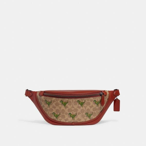 Description: Made for a life in constant motion, the League keeps your game plan on track. Crafted of refined leather and our Signature canvas detailed with fun-loving Coach mascot Rexy, this functional design keeps essentials close at hand. The sleek style features an inside multifunction pocket and a sporty seatbelt-style strap to wear crossbody or around the waist.