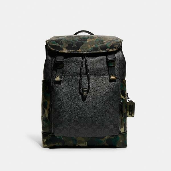 Description: Made for a life in constant motion, the League keeps your game plan on track. Crafted of Signature canvas and polished pebble leather featuring our graffiti-inspired Camo print, this roomy backpack is a comfortable choice for every day featuring a padded back and straps. Organized with multiple pockets inside and out, the sporty style has a dedicated laptop sleeve and plenty of space for notebooks, water bottles and other essentials.
