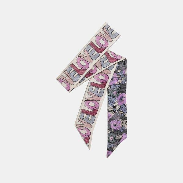 Description: This slim scarf features graphics inspired by the ’70s designs of our first creative director, Bonnie Cashin, on one side and reverses to a soft nostalgic blossom print on the other. Crafted of lightweight silk, it adds a cool nostalgic touch to any look.