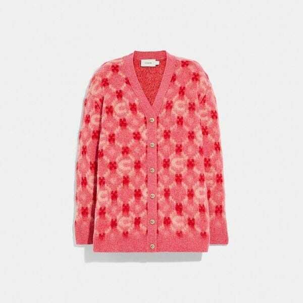 Description: Celebrate 2022 the Year of the Tiger with our special Lunar New Year collection. Designed in a festive red hue symbolizing luck, happiness and good fortune, this oversized wool cardigan features a modern argyle cleverly detailed with our Signature.
