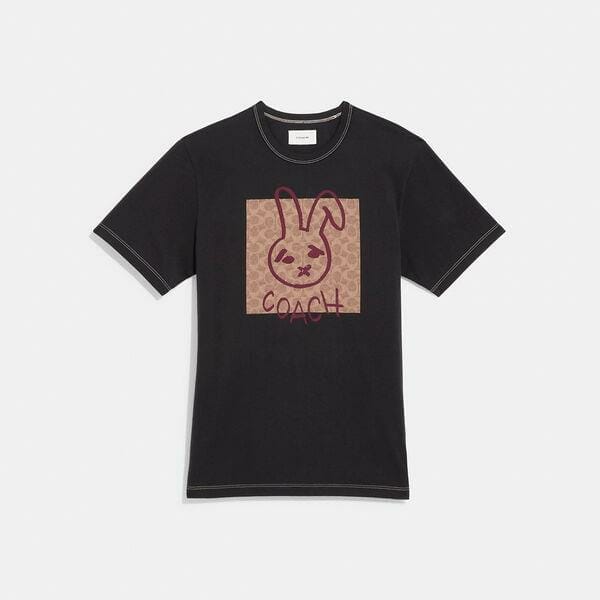 Description: Celebrate 2023 Year of the Rabbit with our special Lunar New Year collection. Crafted of certified organic cotton made without the use of harmful chemical fertilizers and pesticides, this T-shirt is part of Coach Forever, a collection inspired by our commitment to rethinking and reducing our impact on the planet. The classic-fit crewneck features our graffiti-inspired rabbit graphic set against our Signature.