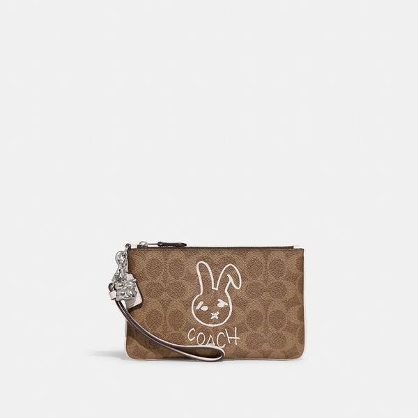 Lunar New Year Small Wristlet In Colorblock Signature Canvas With Rabbit