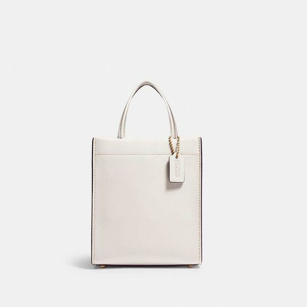 Description: Reimagined for today, this buttery soft glovetanned leather mini tote is based on the iconic “Cashin Carry” from 1969, a top-handle style by Coach’s first lead designer, Bonnie Cashin. Secured by a magnetic snap closure, the petite style has room for cash, cards, keys and other accessories. Attach the adjustable strap to wear on the shoulder or crossbody.