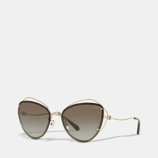 Description: Open frames put a retrofuturistic twist on the iconic cat eye silhouette. Lightweight and durable, they feature scratch-resistant lenses that offer full UV protection.100% UV protection. Gradient lenses. Packaged in a protective Coach case with microfiber cleaning cloth.