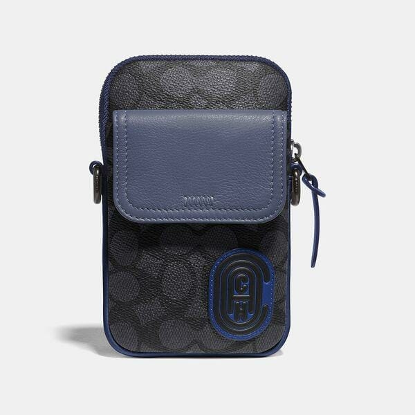 Description: Designed to keep pace with your busy day, our streamlined Pacer was made for life on the move. Finished with our Coach retro graphic, this Signature canvas and smooth leather pouch organizes everyday essentials including a phone, wallet, keys and wireless earbuds. Wear it crossbody with the detachable strap for hands-free ease, toss it into a tote or attach it to a bag strap with the snap loop at the back.