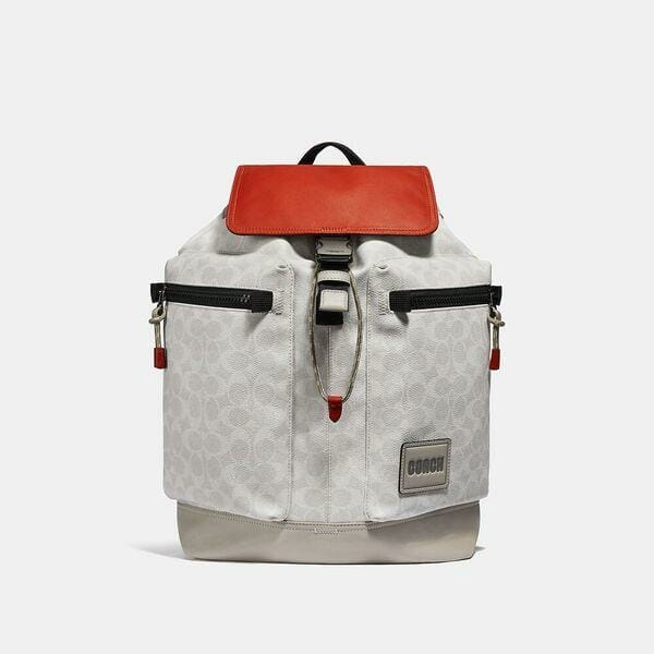 Description: Designed to keep pace with your busy day, our streamlined Pacer was made for life on the move. This generously sized Utility Backpack has space for a 15″ laptop, a change of clothes and more, with oversized exterior zip pockets for easy access to essentials. Secured with an interior drawstring and speedclip closure, the sporty style is a roomy design crafted of Signature canvas with smooth leather and finished with our Coach retro patch.