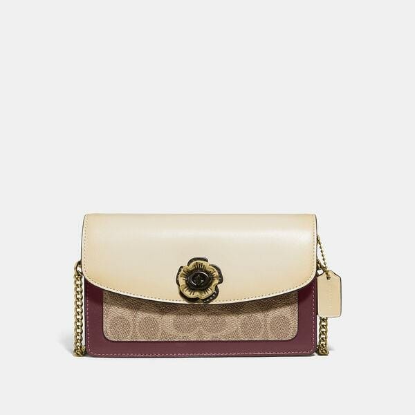 Description: Signature coated canvas and refined calf leather. Eight credit card slots. Inside zip and multifunction pockets. Turnlock closure, fabric lining. Outside open pocket. Detachable chain strap with 23″ drop for shoulder or crossbody wear. 7 1/2″ (L) x 4 3/4″ (H) x 1 1/4″ (W).