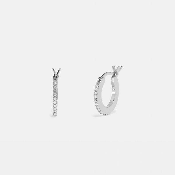 “A minimalist option for every day, these delicate hoops hug the earlobe. Glittering crystals add a hint of subtle sparkle.