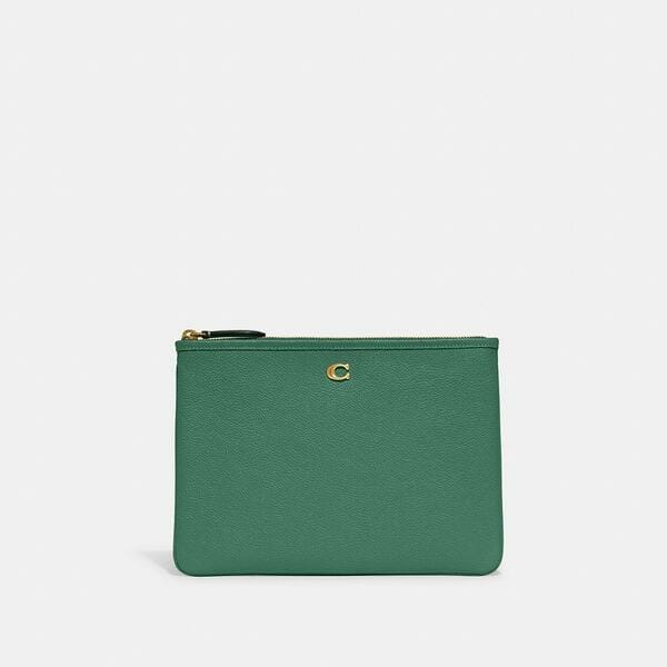 Description: A functional design that’s perfect for days on the go, this polished pebble leather Pouch 28 organizes essentials with room for an iPad and more. Detailed with our Signature hardware, carry it alone or toss it inside of a larger bag.