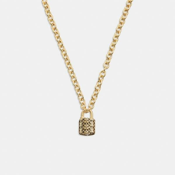 Description: Unlock something special. This chunky chain necklace features a padlock pendant detailed with our Signature. Accented with crystals for a bit of sparkle, wear it long or short with the adjustable clasp.