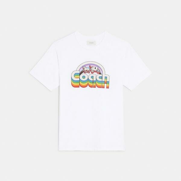 Description: This T-shirt is part of the Coach Pride Collection, a celebration of equality, diversity, and authentic self-expression within the LGBTQIA+ community this month and every month. Featuring our rainbow Horse and Carriage motif, this classic-fit design is crafted of certified organic cotton made without the use of harmful chemical fertilizers and pesticides, part of our commitment to rethinking and reducing our impact on the planet.