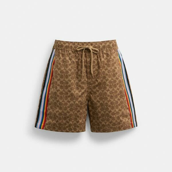 Description: These shorts are part of the Coach Pride Collection, a celebration of equality, diversity, and authentic self-expression within the LGBTQIA+ community this month and every month. The classic-fit cotton silhouette features our iconic Signature and is finished with a comfortable elastic drawstring waistband, slip pockets and bold rainbow-hued side stripes. Pair with the matching shirt for a coordinated look.
