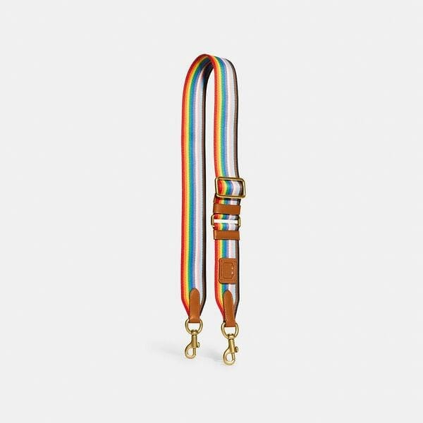 Description: This Webbing strap is part of the Coach Pride Collection, a celebration of equality, diversity, and authentic self-expression within the LGBTQIA+ community this month and every month. Instantly update your bag with this striped lightweight webbing strap inspired by the colors in the Pride flag. The interchangeable design features two dogleash clips that allow you to attach it to our most popular styles.