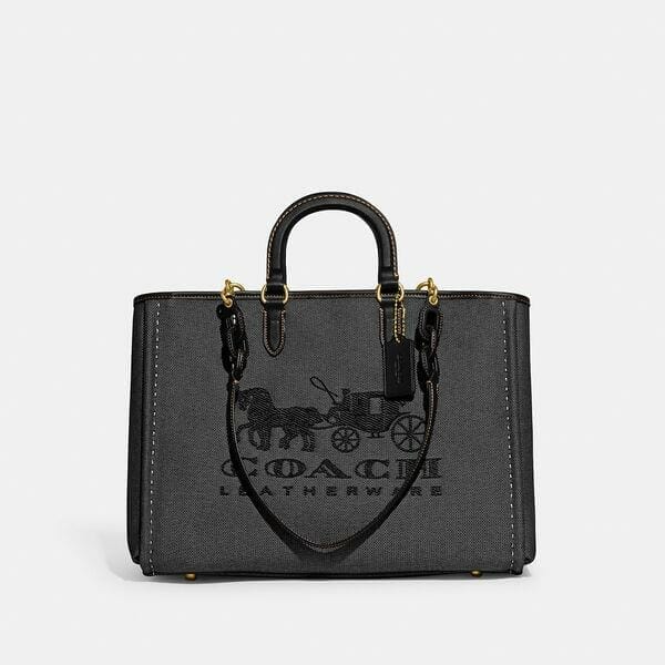 Description: A sophisticated go-everywhere tote, the versatile Reese features expandable side gussets that fan out when you need a little extra space. Embroidered with our name and iconic Horse and Carriage motif, the spacious glovetanned leather and sturdy cotton canvas design has room for a 15″ laptop. It’s finished with luggage top handles, an inside pocket to organize small essentials and a detachable chain-detailed leather strap for hands-free wear. Who says you can’t have (and carry) it all?