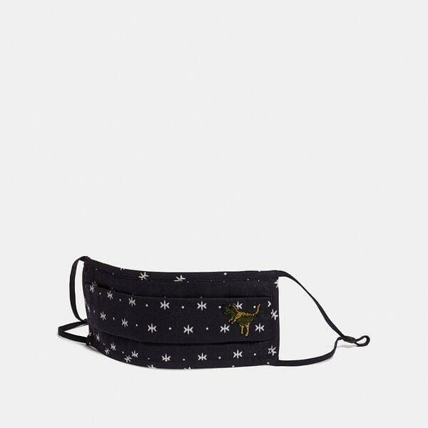 Description: Take care of yourself, and each other. Our non-medical grade, washable reusable face mask is crafted from a double layer of breathable soft cotton. Printed with our camouflage-inspired Wild Beast motif, it’s embroidered with Coach mascot Rexy. The comfortable, secure elastic ear loops adjust with a rubber stopper for the perfect fit.