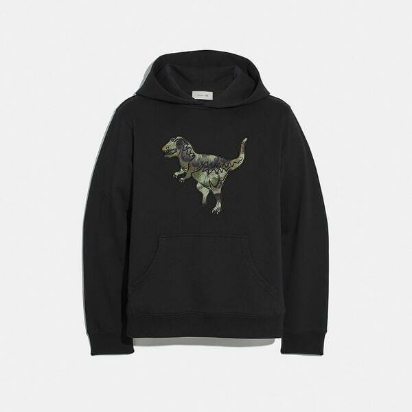 Description: This soft cotton hoodie features an appliqué of Rexy the Coach mascot in a deeply-hued maximalist print by renowned textile artist Kaffe Fassett. It’s finished with a kangaroo pocket and ribbed trim. About the artist: With a unique sense of color and a drive to create, Kaffe Fassett is internationally recognized for his half-century of work in the decorative arts-needlepoint, patchwork, knitting, painting and ceramics. Traveling the globe giving lectures and workshops, the multimedia artist’s complex designs can be found in museum collections all over the world.
