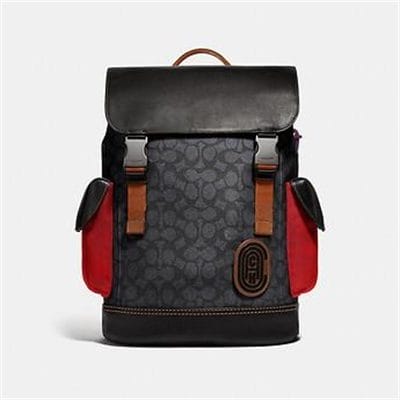 Description: Like the New York City street it’s named after, Rivington mixes downtown cool with professional good looks. Finished with our Coach patch, this soft backpack is crafted in a mix of Signature canvas, refined leather and durable CORDURA® fabric. It has lightweight mesh spacer panels, room for a 15” laptop and multifunction pockets to keep everything neat and organized.Features:Signature coated canvas, CORDURA® fabric and refined calf leatherInside zip, cell phone and multifunction pocketsInside sleeve with secure tab for a 38cm laptopDrawstring and speedclip closures, fabric liningTop handle with 6cm dropOutside snap pocketsOutside zip access to interiorAdjustable shoulder straps 27.5cm (L) x 40cm (H) x 15cm (W)CORDURA® is a trademark of INVISTA for durable fabric