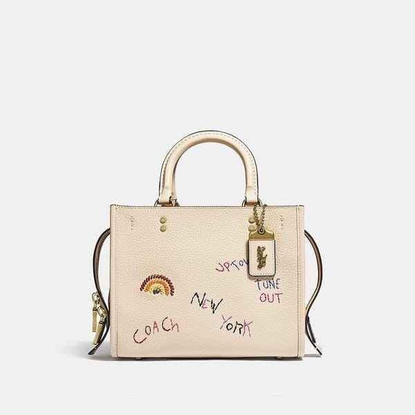 Description: Wear it, love it, pass it on. This style is part of Coach Forever, a collection inspired by our commitment to rethinking and reducing our impact on the planet. Inspired by free spirits, rebels and dreamers, the aptly named Rogue is a go-anywhere bag. Smaller than the original, the 25 is crafted of our naturally dyed pebble leather and glovetanned leather embroidered with lighthearted symbols, sayings and Coach icons.