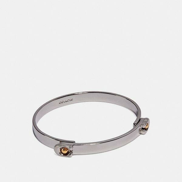 Description: This minimalist bangle features our sculpted Signature. Easy to slip on and off with the tension hinge closure, wear mixed with other bracelets or alone.