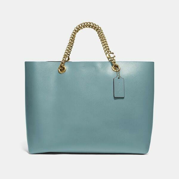 Description: The essential carryall, our Central Tote is generously sized to hold a 13″ laptop, wallet, makeup bag, a change of shoes and more, making it the perfect choice for everyday or overnight. Crafted of refined leather, it’s finished with a secure magnetic closure. The Signature chain accents double as top handles for a totally different look.