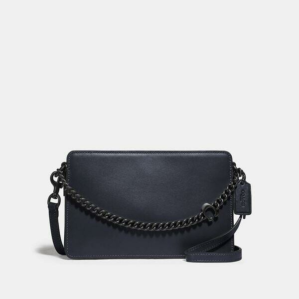 Description: This sophisticated, refined leather bag holds more than you think with a secure center zip compartment and two expandable snap pockets. Finished with an adjustable crossbody strap, our Signature chain accent doubles as a top handle for a totally different look.