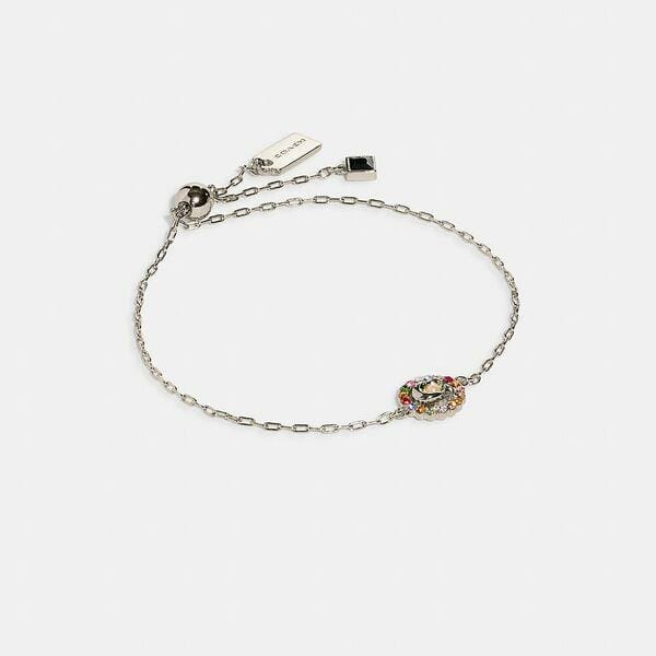 Description: A colorful pick for day or night, this delicate chain bracelet dazzles with a vibrant pavé ring glittering around our Signature. It’s finished with an adjustable sliding bead closure to fit most wrists.