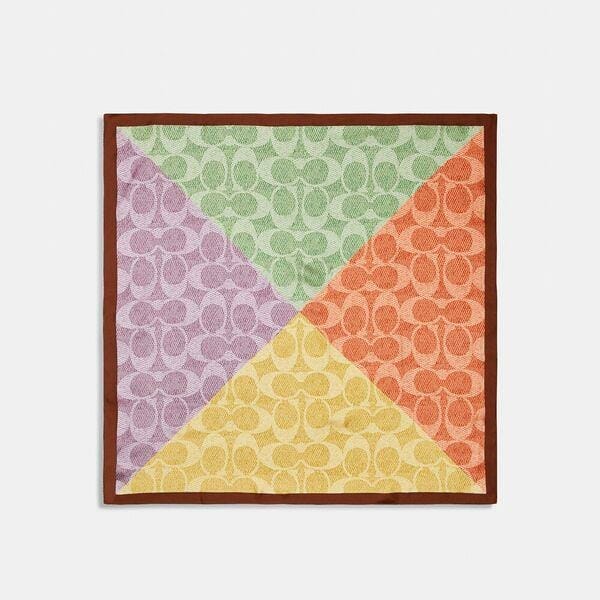 Description: Crafted of lightweight silk, this square scarf features our Signature set against a bright kaleidoscope pattern and finished with a solid border. Wear it around your neck to add a colorful touch to any look.