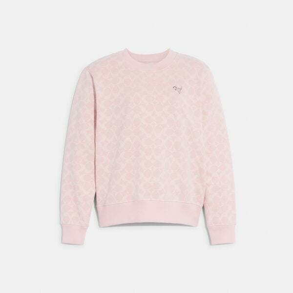 Description: Add our Signature to your style with this cozy cotton sweatshirt. The sporty classic-fit style is woven with our iconic Signature and finished with an embroidered Rexy patch. Pair with the matching shorts for iconic Coach style.