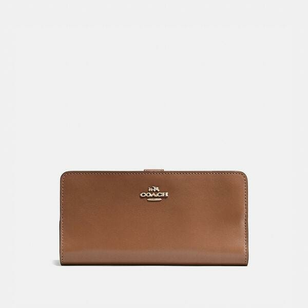 Description: Crafted in smooth, refined leather, the perfectly named Skinny Wallet conceals a well-organized interior complete with 15 card slots, three full-length bill compartments, an ID window and a zippered coin pocket all in a slender silhouette.