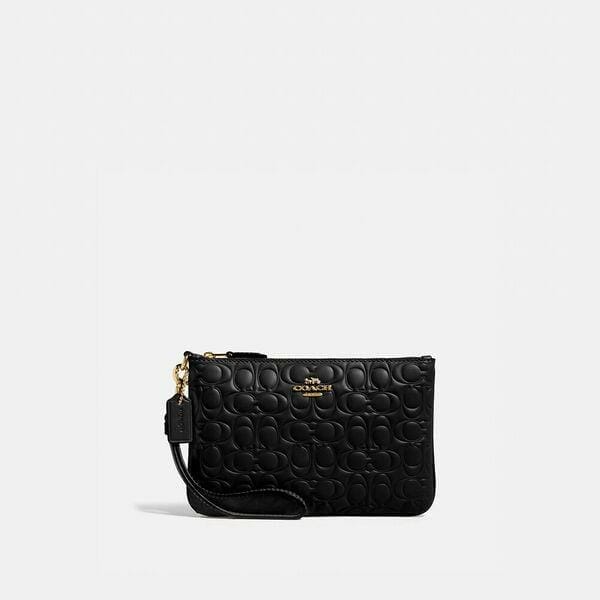 Description: Crafted in our Signature leather, this wristlet is perfectly sized for cards, cash and a phone. Wear it on your wrist or clip it inside a larger Coach bag.