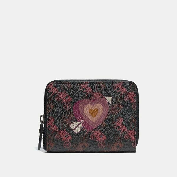 Small Zip Around Wallet With Horse And Carriage Print And Heart