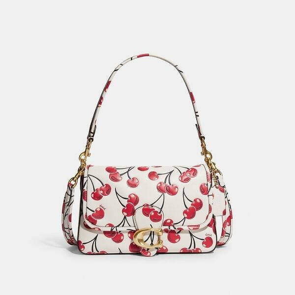 Description: The Soft Tabby reimagines our structured take on an archival 1970s Coach design with a slouchy relaxed feel. Finished with our Signature hardware for an iconic touch, this smooth leather shoulder bag printed with a cheerful cherry print features zip pockets inside and out to organize small accessories and two detachable straps to carry by hand, style as a short shoulder bag or wear crossbody.