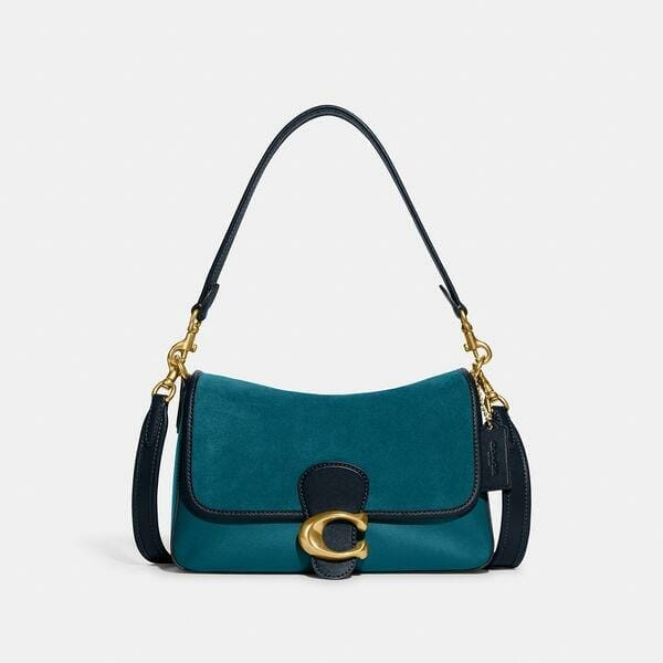 Description: The Soft Tabby reimagines our structured take on an archival 1970s Coach design with a slouchy relaxed feel. Finished with our Signature hardware for an iconic touch, this smooth leather and velvety suede shoulder bag features zip pockets inside and out to organize small accessories and two detachable straps to carry by hand, style as a short shoulder bag or wear crossbody.