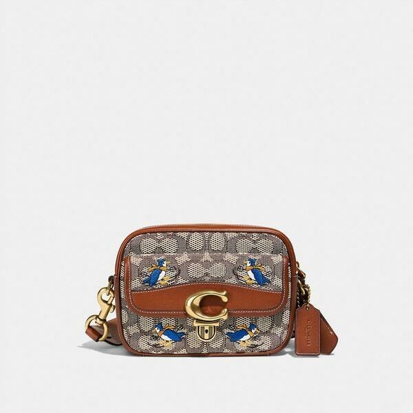 Description: Crafted of glovetanned leather and our Signature Textile Jacquard, a blend of organic cotton and recycled polyester made from recycled plastic bottles, this Studio Camera Bag 18 is part of our commitment to rethinking and reducing our impact on the planet by repurposing waste materials. Embroidered with whimsical creatures inspired by the optimism of nature and a sense of wonder in the everyday, Studio is a see and be-seen bag featuring our Signature push-lock closure, a modern take on an archival clasp born in our Coach Design Studio. The compact take-everywhere style has an organized interior, a convenient exterior slip pocket for easy access to essentials and a detachable strap for crossbody wear.