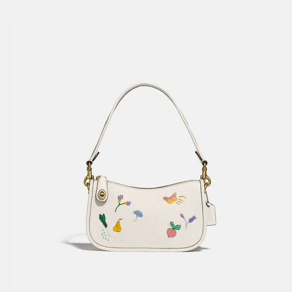 Description: The Swinger 20 Bag is part of The Coach Originals, a collection of archival-inspired bags that celebrates our legacy and authentic New York heritage. Detailed with a playful garden motif, this streamlined glovetanned leather style is based on a 1980s Coach design reimagined for today. Featuring our iconic turnlock closure, the petite bag sits just beneath the underarm with the short-strap or it can be carried as a clutch. Some styles are just too good to leave in the archives.