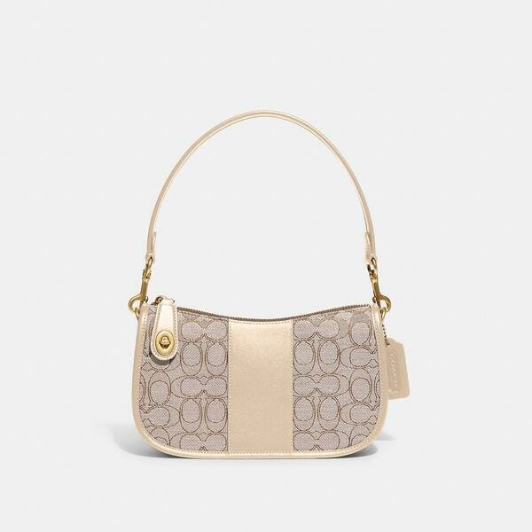 Description: The Swinger Bag is part of The Coach Originals, a collection of archival-inspired bags that celebrates our legacy and authentic New York heritage. This streamlined Signature jacquard and glovetanned leather style is based on a 1980s Coach design reimagined for today. Featuring our iconic turnlock closure, the zip-top short-strap shoulder bag sits just beneath the underarm for hands-free convenience and includes a detachable strap to wear crossbody. Some styles are just too good to leave in the archives.