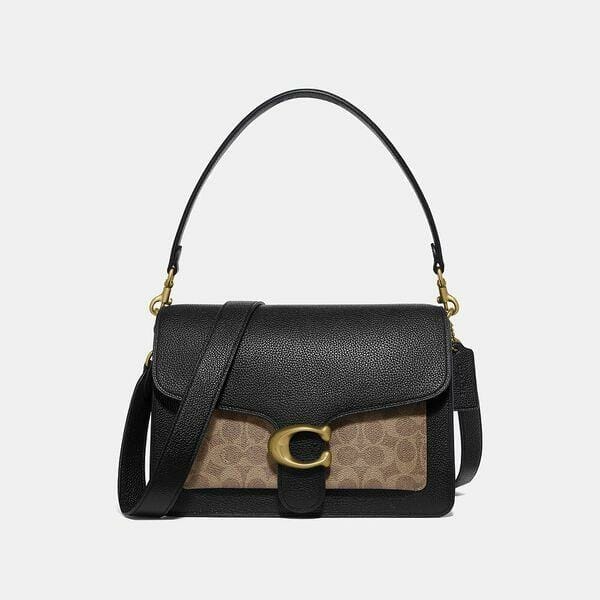 Description: A modern take on an archival 1970s Coach design, our structured Tabby shoulder bag is crafted in a dynamic mix of our Signature canvas, polished pebble leather and suede. Finished with our Signature hardware for an iconic touch, the versatile silhouette features two detachable straps to carry by hand, style as a short shoulder bag or wear crossbody.