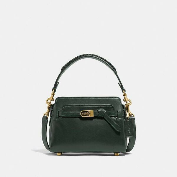 Description: Smartly chic with leather belting and our iconic Horse and Carriage hardware, our structured Tate makes elegance feel effortless. Crafted of our buttery soft glovetanned leather and smooth leather with whipstitch detailing, this petite Crossbody 18 has pockets inside and out to keep essentials organized. The versatile style features two detachable straps for carrying by hand, wearing on the shoulder or as a hands-free crossbody.