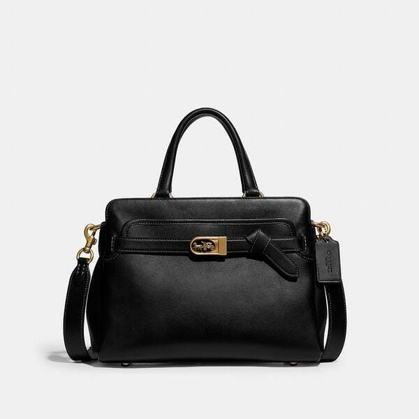Description: Smartly chic with leather belting and our iconic Horse and Carriage hardware, the structured Tate makes elegance feel effortless. The spacious Carryall 29 has a three compartment design with pockets inside and out to keep essentials organized. Crafted of buttery soft glovetanned leather, carry it by hand or attach the adjustable strap to wear on the shoulder or as a hands-free crossbody.