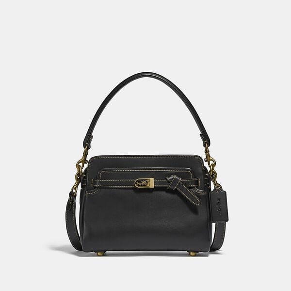 Description: Smartly chic with leather belting and our iconic Horse and Carriage hardware, the structured Tate makes elegance feel effortless. Crafted of buttery soft glovetanned leather, this carryall has pockets inside and out to keep essentials organized. The versatile style features two detachable straps for carrying by hand, wearing on the shoulder or as a hands-free crossbody.