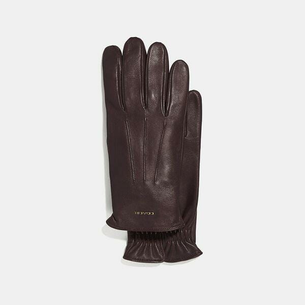 Description: Thisbuttery nappa leather glove keeps you warm and well connected: a special coating on the leather makes it compatible with your touch-screen devices. Lined with wool, it’s finished with Signature hardware. 100% leather. Lining: 100% wool.