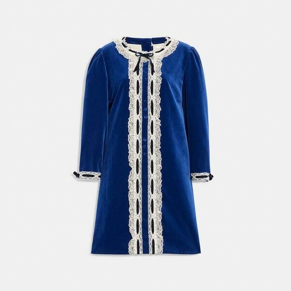 Description: Welcome back an iconic early 2000’s grunge style with this soft velvet babydoll dress. Finished with lace trim, the slightly A-line silhouette features a button-up back and puffed quarter-length sleeves. Getting the Y2K feels (again.)