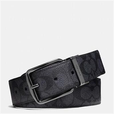 Description: This handsome reversible belt offers two different looks in one design. Printed Coach logo on pebble-embossed coated canvas offers signature flair on one side, with a refined solid color on the reverse. Using the simple instructions, it cuts to size with a pair of scissors for the perfect fit. Features:Signature coated canvasCut to sizeReversible48cm (L) x 4cm (W)