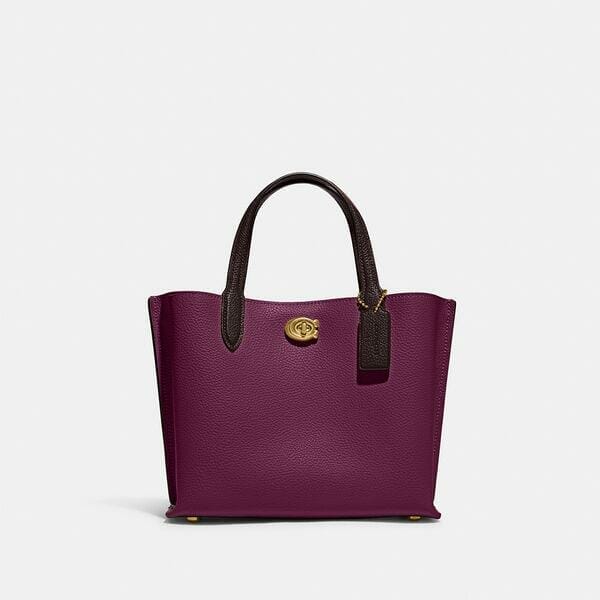 Description: Not too big, not too small, Willow is the perfect carry-it-all tote with space for all of your day-to-day essentials. Crafted of polished pebble leather, the 24 features two open pockets, a secure center zip compartment and our Signature turnlock closure. Carry it by the top handles or wear on the shoulder and crossbody with the detachable strap.