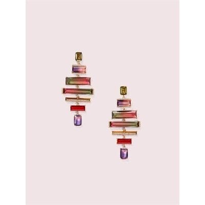 Description: our fall color palette is full of bold jewel tones, hence these 12k gold-plated metal statement earrings accented with faceted gems in eye-catching ombré shades. the contrasting sizes and shapes of each rock, paired with subtle pavé detailing, create an unexpected way to add color to any dress or jeans and a tee.