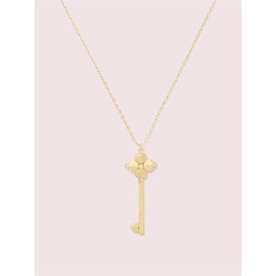 Description: we designed our lock and spade collection as a nod to a padlock and key, with unique feminine touches like the dainty chain on this gold-plated metal key-shaped pendant. the spade flower head and heart bit are subtle ways we incorporated our signature spin throughout.