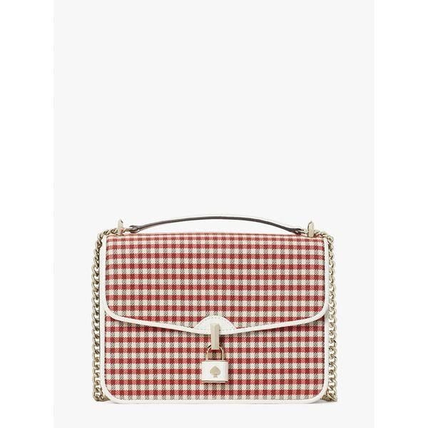 Description: our new locket shoulder bag clicks with everything. so it’s only fitting we made a version in classic plaid.